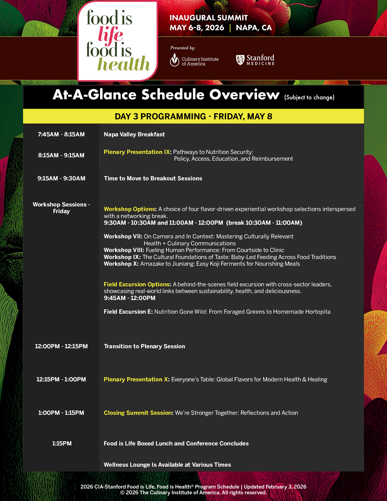 Program Schedule: May 6-8 Download a full summit program here Download a full summit program here See below for a daily snapshot of the 2026 program.